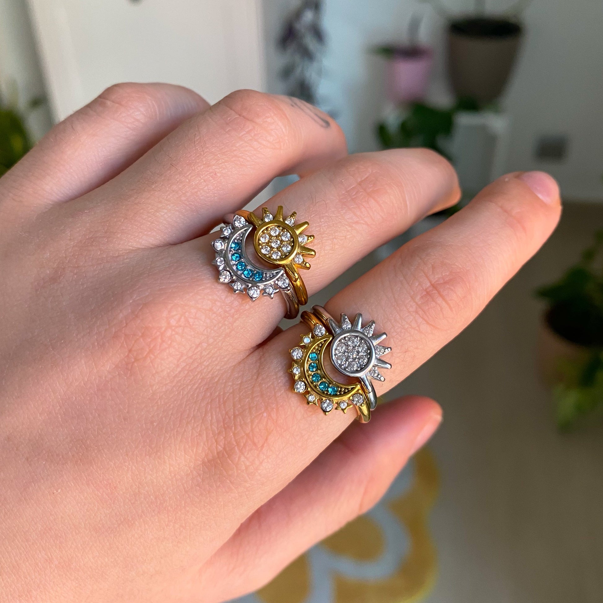 Anello regolabile in acciaio inossidabile con strass